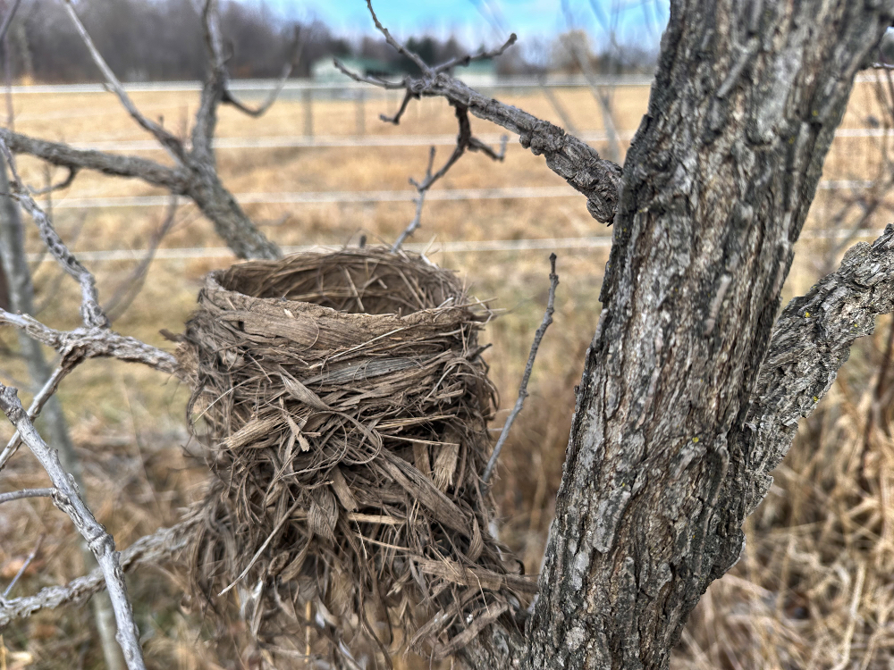 The birds didn’t winterize this structure, but maybe they’ll return in a few months to put their summer home to good use.