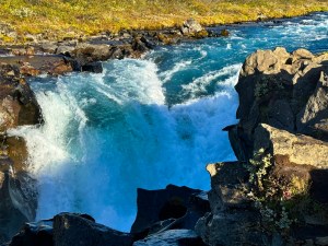 We soon set off from our fantastic farm visit toward the Hraunfosser and Barnafosser waterfalls. I thought I had seen pretty much everything there is to see about waterfalls, but the spectacle of the “lava falls” wowed us beyond expectations.