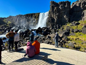 Our legs got a little break with a 45-minute drive to Thingvellir National Park, where we set off again to add more miles of hiking under very sunny skies.