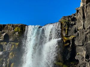 One thing that still images cannot convey about the variety of waterfalls in Iceland is the majesty of the roar of massive quantities of flowing water endlessly cascading over and around breathtaking rock formations. They are right up there for stare-ability with flaming logs in an outdoor firepit. I could sit and watch the water for hours.