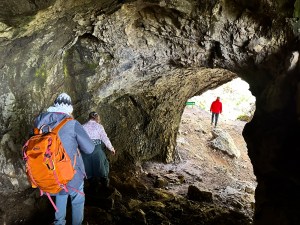 Research had made us aware of a river crossing that consisted of a log and a cable hand-hold that can barely be discerned in the distance of the photo above (click to enlarge). We all agreed a decision could be made when we reached that point. I’m glad we chose to press on because the route included a pretty cool cave that was worth the experience.