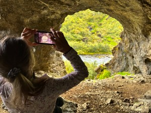 It meant we wouldn’t actually reach a view of the high drop of the Glymur Falls, but we were all just fine with that outcome, safe and dry as we were.