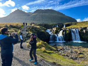 Moving on, we enjoyed a great view of Kirkjufell Mountain and the waterfalls nearby.