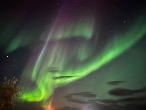 Late in the evening of our third day, an app on Cyndie’s phone alerted her to our first possibility of aurora visibility. It was really chilly out, so I elected to glance through the window while Cyndie, Barb, and Mike stepped out to watch.