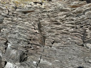 On the way back, we ventured to an outcrop that was way more dramatic than photos convey. Mike made a good effort to show the steepness.