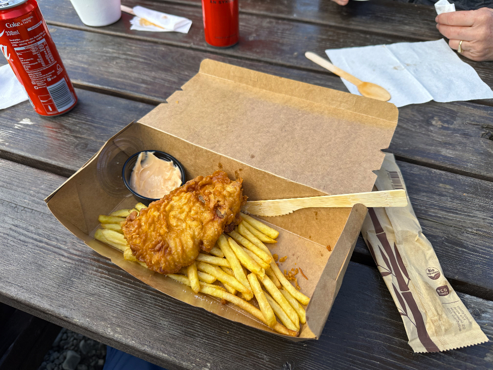 When we returned from the glacier and dropped off our ice axes and crampons, the fish & chips being served from the food trailer nearby caught my attention.