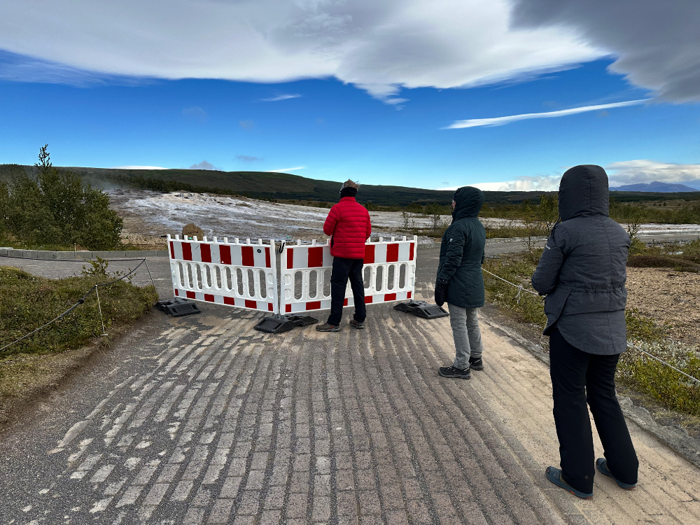 Setting our own agenda made it easy to switch up our itinerary and visit the Strokkur Geyser before the Gullfoss Waterfall simply because we came upon it first on the route from our cabin. The early hour and intense wind had us wrapped up tight against the elements.