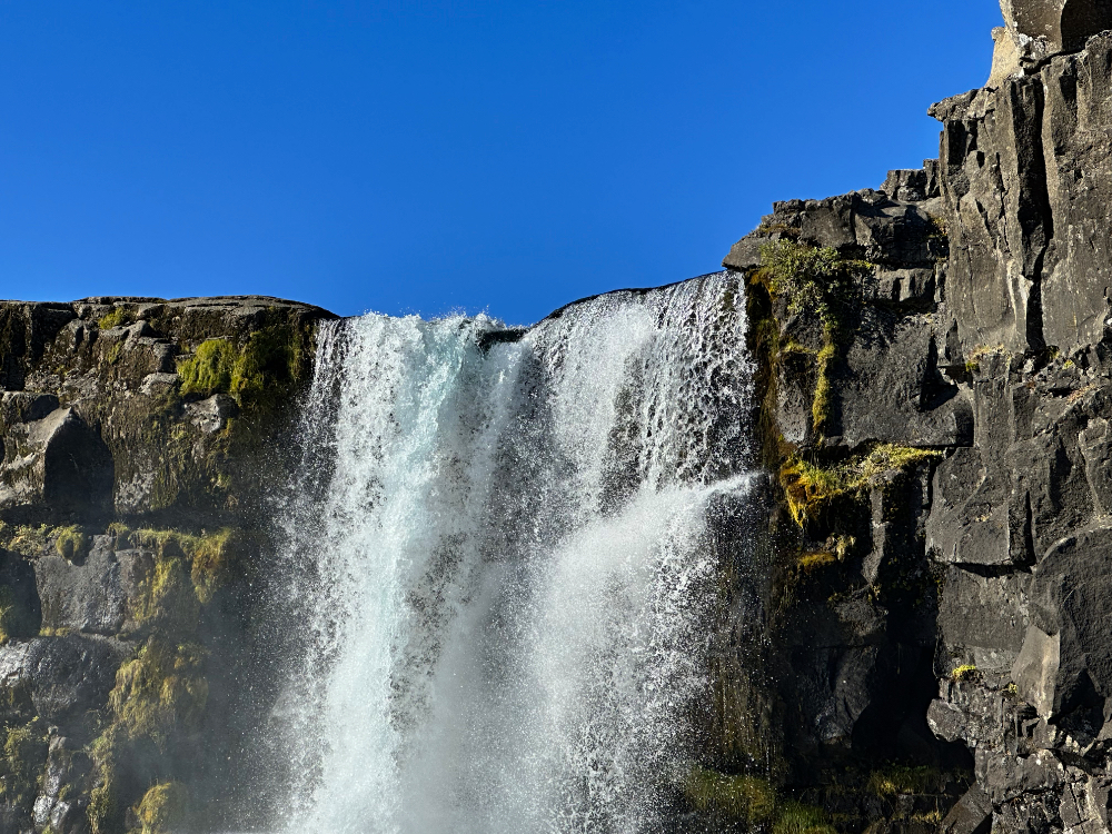 One thing that still images cannot convey about the variety of waterfalls in Iceland is the majesty of the roar of massive quantities of flowing water endlessly cascading over and around breathtaking rock formations. They are right up there for stare-ability with flaming logs in an outdoor firepit. I could sit and watch the water for hours.