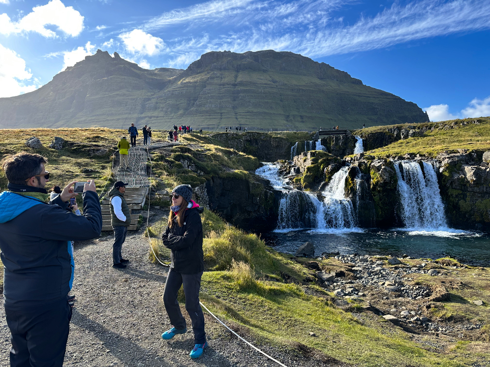 Moving on, we enjoyed a great view of Kirkjufell Mountain and the waterfalls nearby.