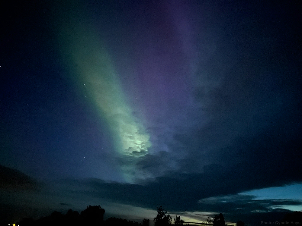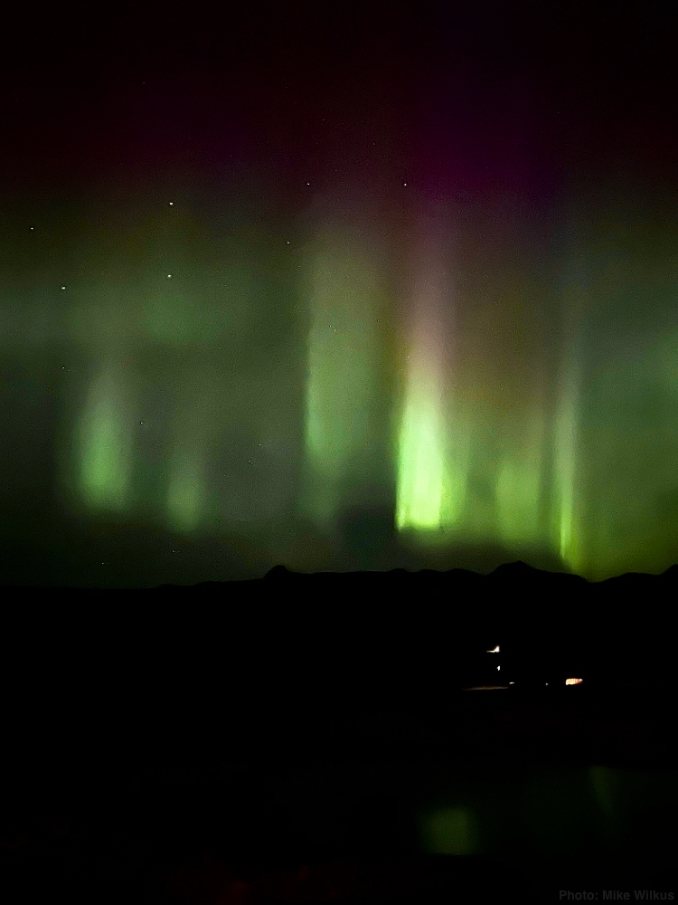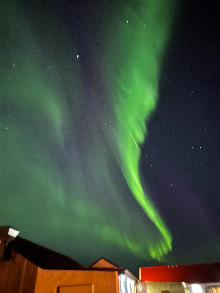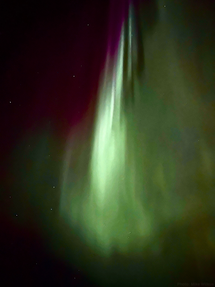 Late in the evening of our third day, an app on Cyndie’s phone alerted her to our first possibility of aurora visibility. It was really chilly out, so I elected to glance through the window while Cyndie, Barb, and Mike stepped out to watch.