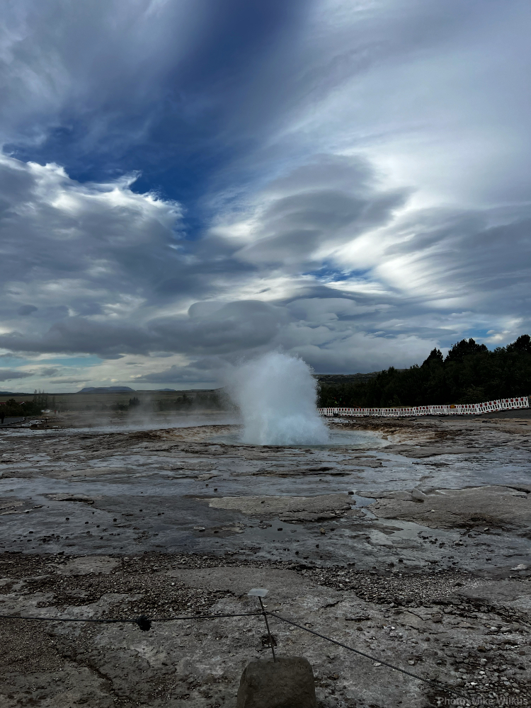 After an extended wait, a construction worker happened by and informed us the big geyser wasn’t blowing. We adjusted our attention to another spot where Mike caught the eruption.