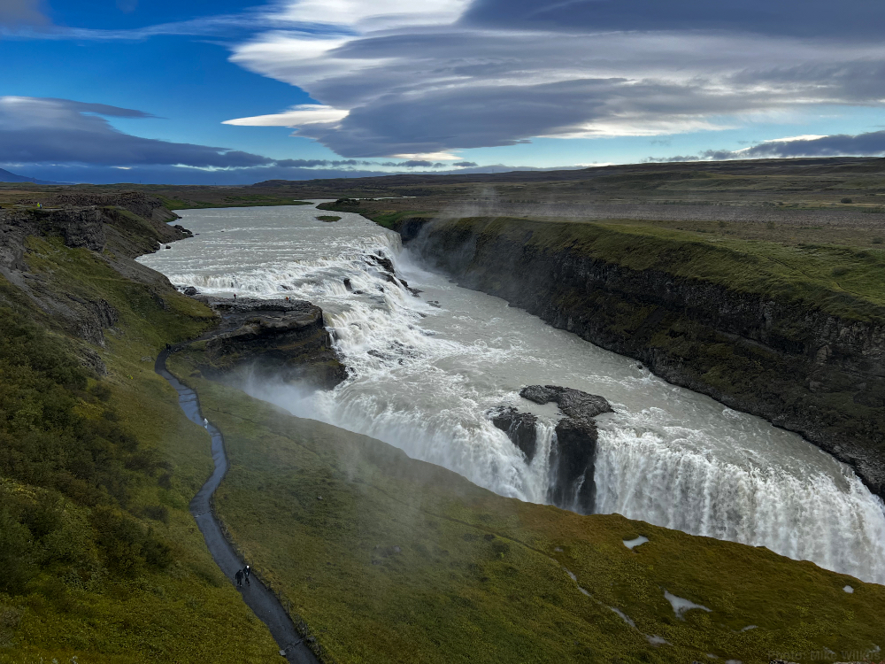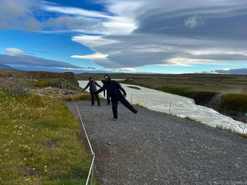 The breeze was no less challenging at Gullfoss, but the temperature was warming, and we generated some of our own warmth with the hiking to see the marvel of yet another unique and astounding waterfall.