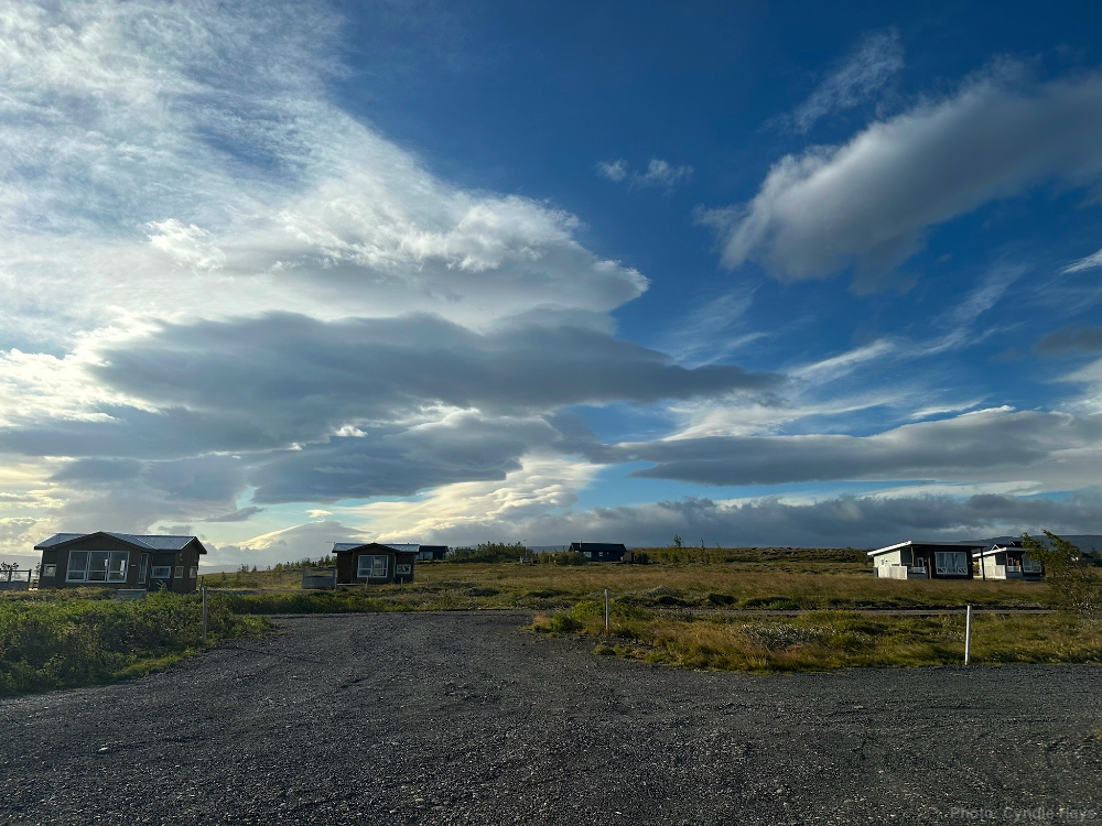 Our fifth day in Iceland started with a casual breakfast in our Blue View Cabin. The makings for a picnic lunch got packed while the Icelandic gales roared outside. We learned about lenticular clouds from Mike, given the perfect visual aids available in the big sky views above.