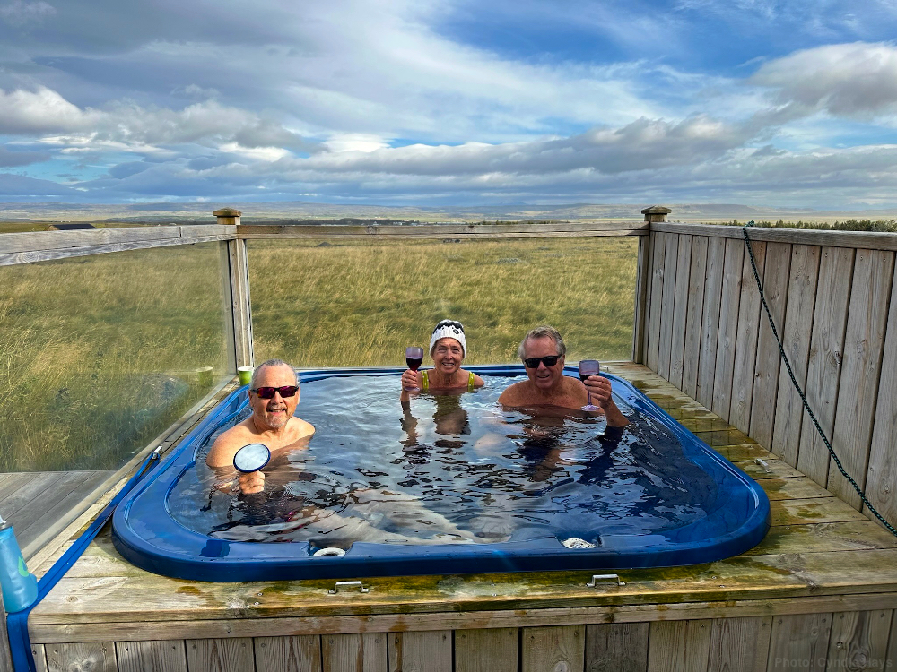 It would be remiss of me to leave out one of the rare shots of us soaking in Iceland. I found this image after yesterday’s post had already been published. Instead of adding it after the fact, this shot of three of us tubbing at our Blue View Cabin gets top billing today.