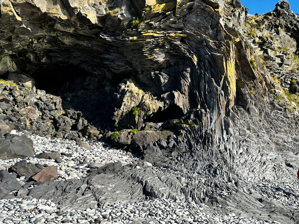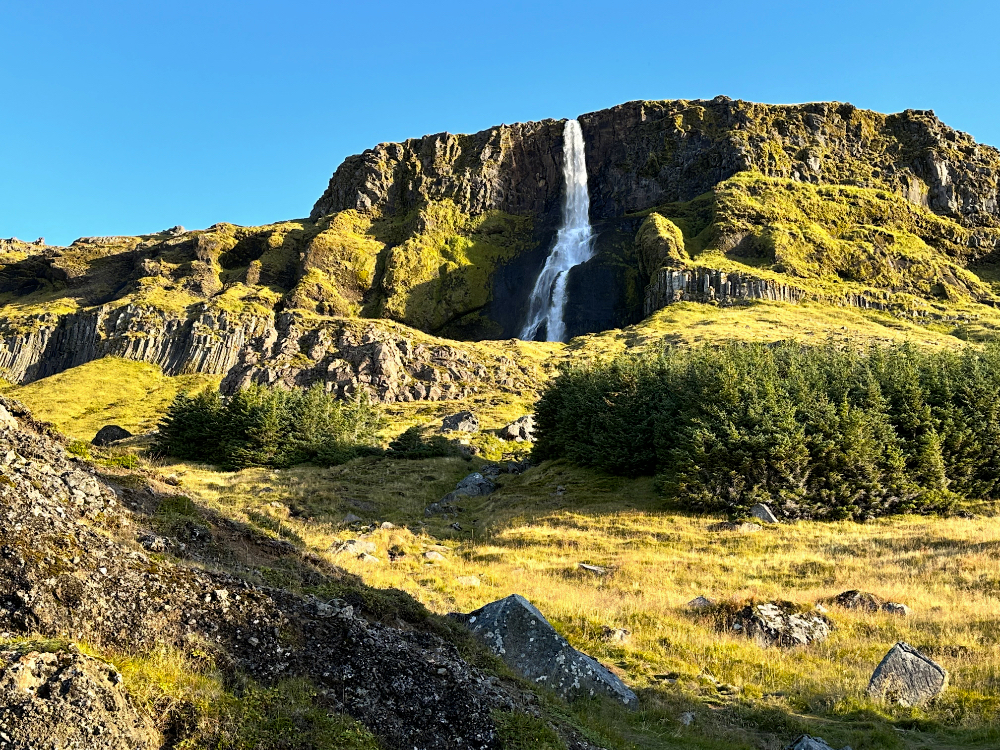It’s impossible to pick, but this 9th day of our Iceland adventure rivals the best of the others for me because of the depth and breadth of rock formations we saw in rapid succession. Right out of the hotel car park, we decided to check out an enticing picnic spot by a modest waterfall with basalt columns.