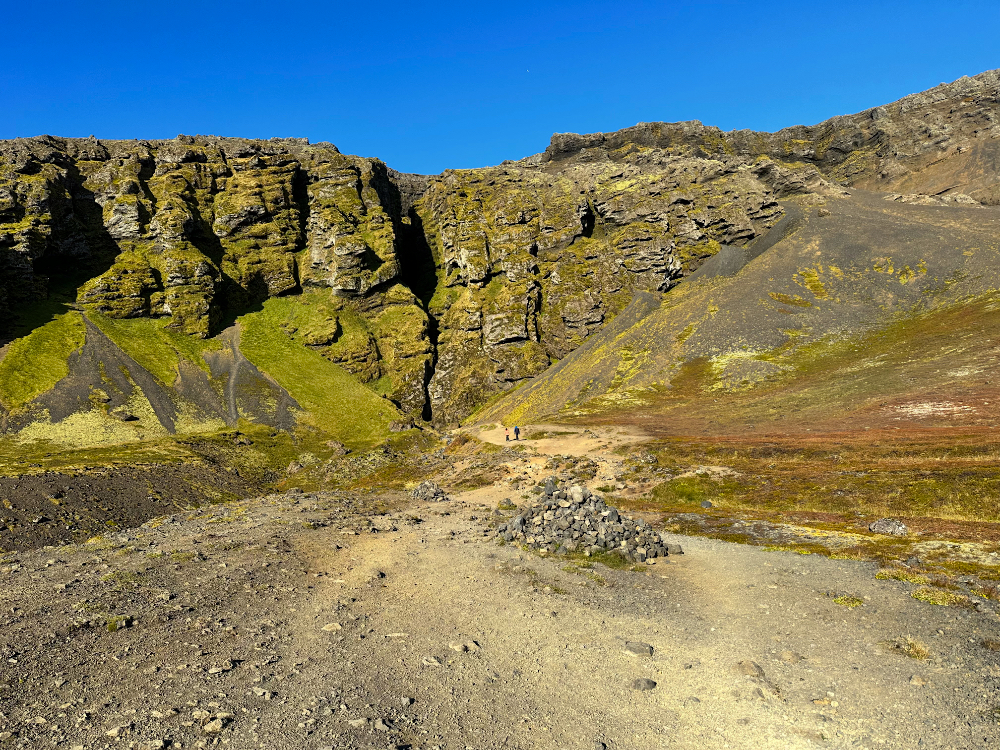 It meant we wouldn’t actually reach a view of the high drop of the Glymur Falls, but we were all just fine with that outcome, safe and dry as we were.