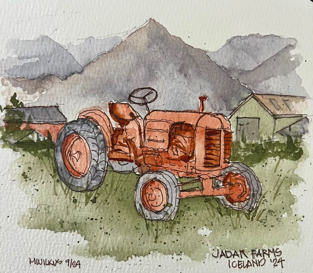 As I shuffled toward the farm guesthouse kitchen on the morning of our 8th day, I found Mike finishing up a watercolor painting as Barb was setting out fixings for our breakfast.