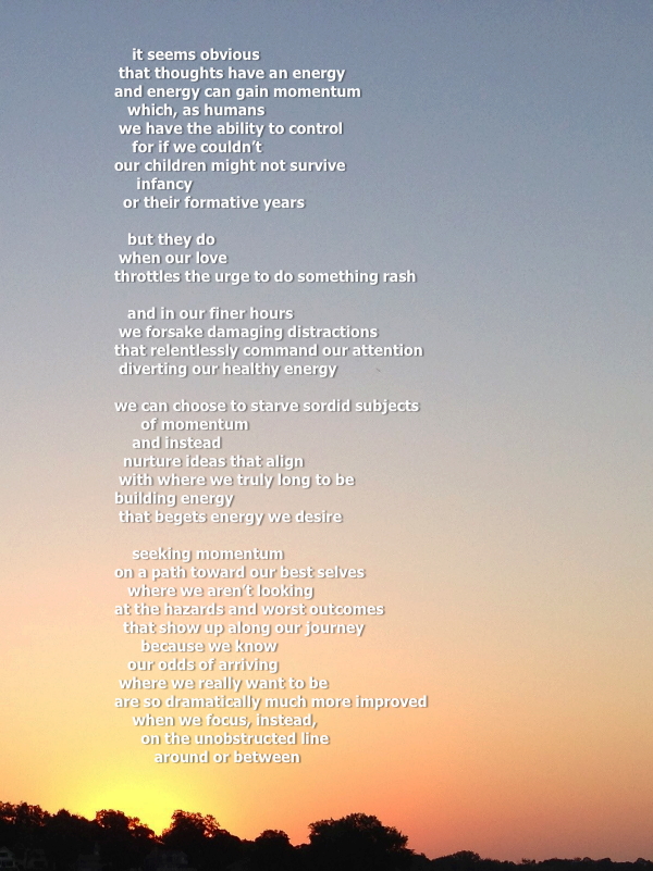 It’s a Saturday morning, and Cyndie and I are thinking, occasionally out loud, together.