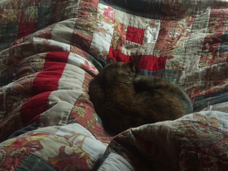 She purred and kneaded her way up my body, arriving at my head. My arms were snuggled deep below the covers and my irritated eyes were frozen shut in resistance to the sting. So she head butted me right in the nose. It was the absolute worst intrusion to the comfort I was so desperately seeking.