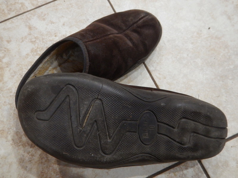 Why is it that this kind of illness triggers an obscure mental focus? I noticed my slippers of many years. I don’t know why I find it so hard to part with my house slippers. Even though these long ago developed a crack in the sole that lets wetness in –noticeable when making brief excursions through puddles in the garage or on the deck or driveway (obviously, venturing out of the house)– they still function perfectly well in every other regard.