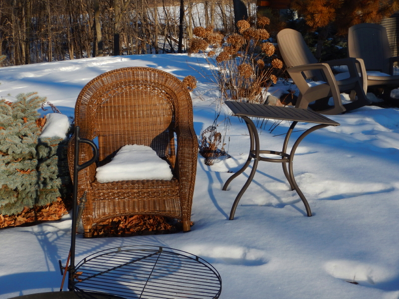 I took this picture because it was feeling just warm enough to remind me of the outdoor furniture and the cook grill over the fire pit, but there was no confusing that it was all still buried and frozen. I guess that is the definition of a January thaw.