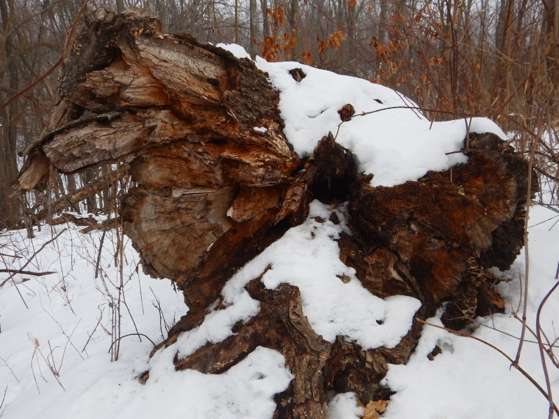 This is a giant tree that long ago fell over on this property that we bought. It lies at the side the trail near the top of a hill and has a very powerful presence. It captures my eye every time I walk by. In my mind I now think of it as “Brooke’s tree,” (the daughter of one of my nieces) because the last time she visited, it grabbed her attention, too. She wandered off the trail in search of a way to get up on top of it. I directed her to come back to the end visible in this image, where she found easy steps up.