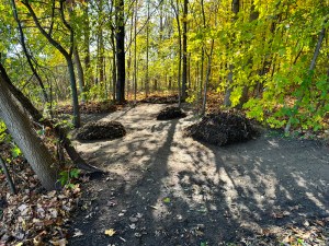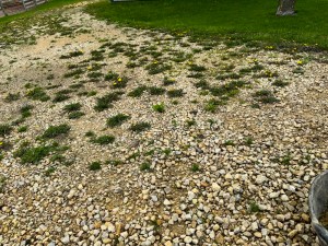 This year we are still using the composted material to fill low spots around the edges of the driveway pavement remaining up by the house. It’s rare that I don’t have uses for the custom soil cultivated from our horses’ manure, but after the driveway landscaping is completed once and for all, I may be looking for a spot to stockpile accumulating inventory.