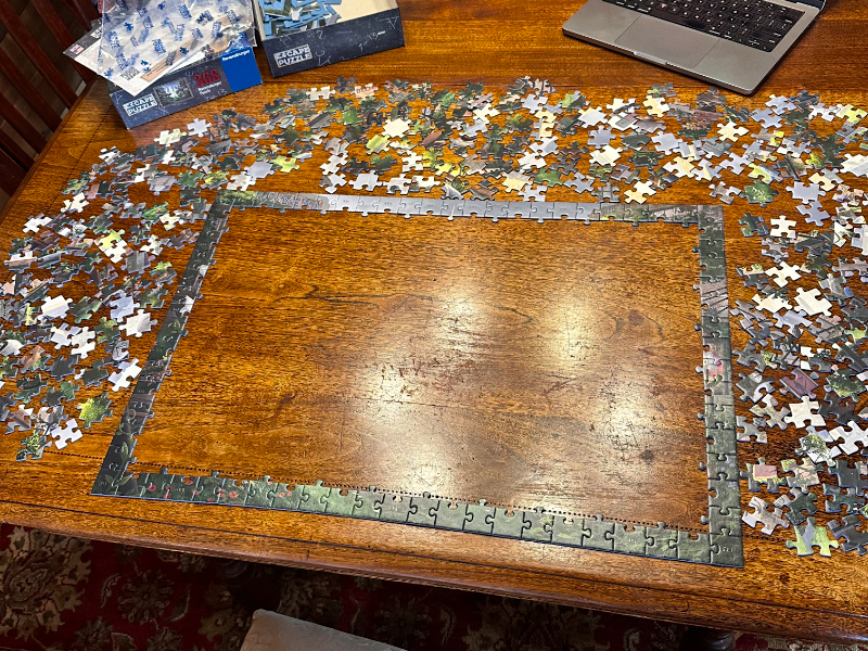 During the winter, I like to assemble jigsaw puzzles. With the pandemic forcing us to stay home, I have more opportunities to puzzle. Now that Cyndie has developed a new interest in puzzling, I am all the more enticed to feed the passion.