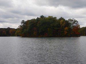 The dominance of gray in the sky and gray reflected off the surface of the water, served to mute the true beauty of the few trees showing good fall color.