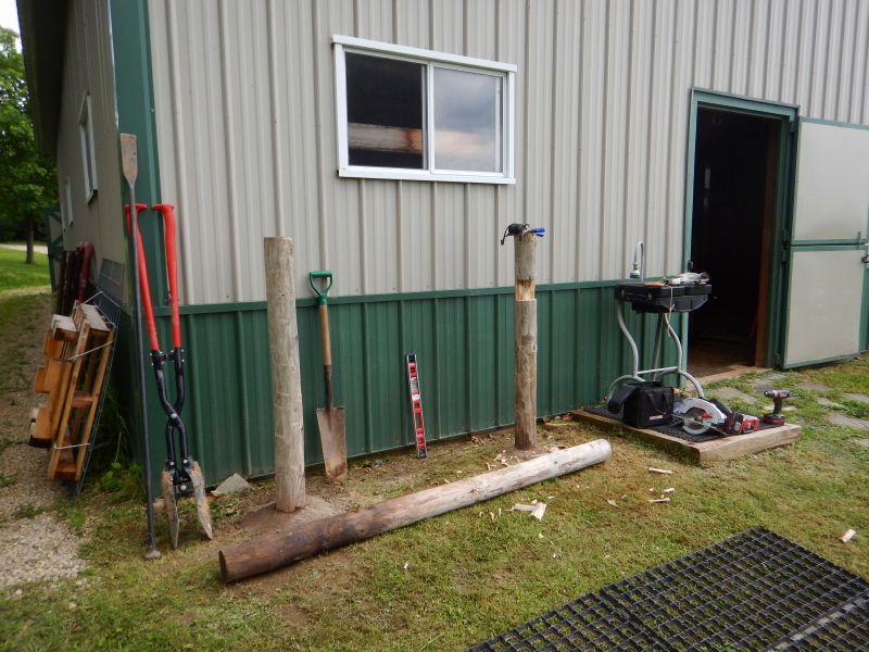It looks good to see the space decked out now like the way I have been imagining it, but time needs to pass for the surface to “weather,” becoming stable enough to support the weight of our horses. Cyndie and the horses have waited this long, they can hold off a little longer before putting it through the ultimate testing.