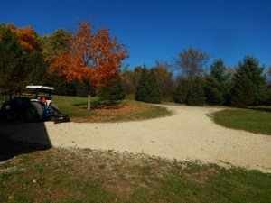 There are days when the projects at Wintervale are a little less spectacular than others. On Friday, our order for a truck-load of gravel was delivered and I used the blade behind the tractor to spread it out. The results are subtle, but to my eye, it is a major improvement.