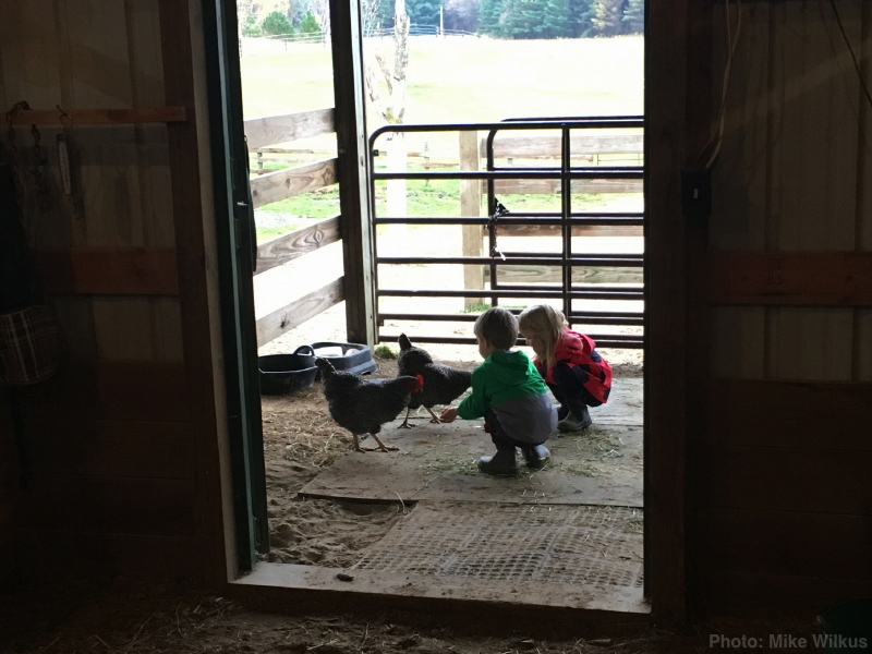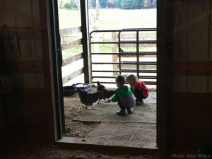 When they all arrived, the first order of business was to head straight to the barn from the car, instead of stopping inside the house. After a brief initial, and very cute, attention to the chickens, the horses pretty much ruled the day.