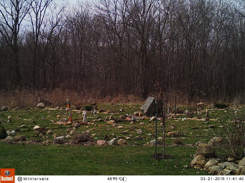 I moved the trail cam over the weekend and am not happy with the results. I wanted to try a more open area so there would be less branch clutter in the foreground of the view.