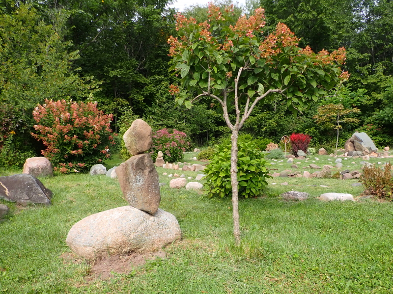 On the right is a hydrangea that Cyndie planted beside her labyrinth. When we moved the gazebo last year, that tree needed to be relocated to the opposite perimeter.