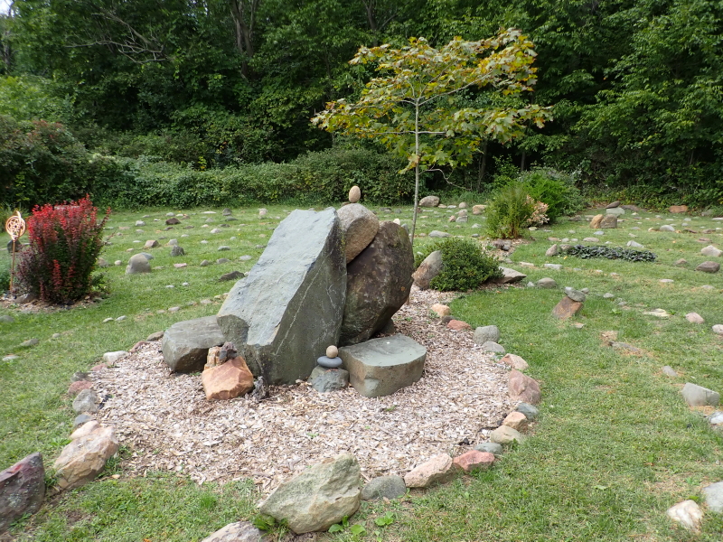 During our work down at the labyrinth last week, I took a picture of the center boulders and the miscellaneous additions scattered around them.