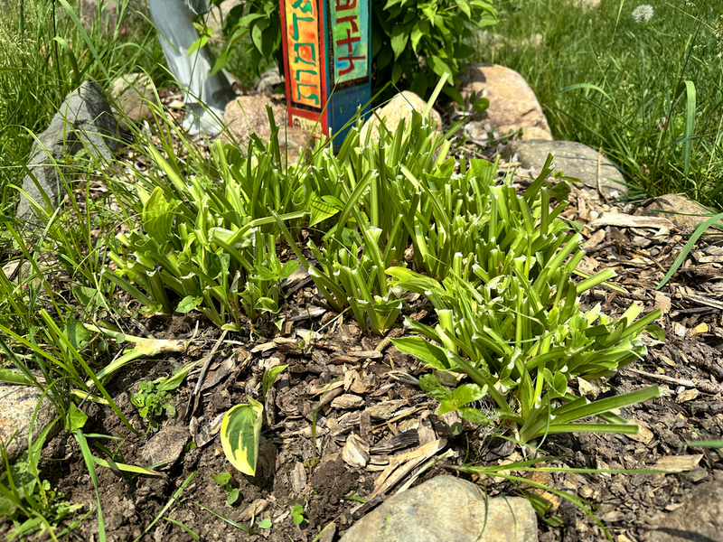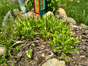 I was trimming tall growth around the rocks in the labyrinth yesterday and discovered the deer had chomped all but a few leaves of the hosta down there. I don’t know why we bother expecting it won’t happen this year. It happens all the time.