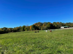 Cyndie was walking Delilah on the perimeter trail and paused to take a picture of the latest version of fall colors developing along our landscape. Then the horses noticed her. Cyndie kept taking pictures of the next few moments.