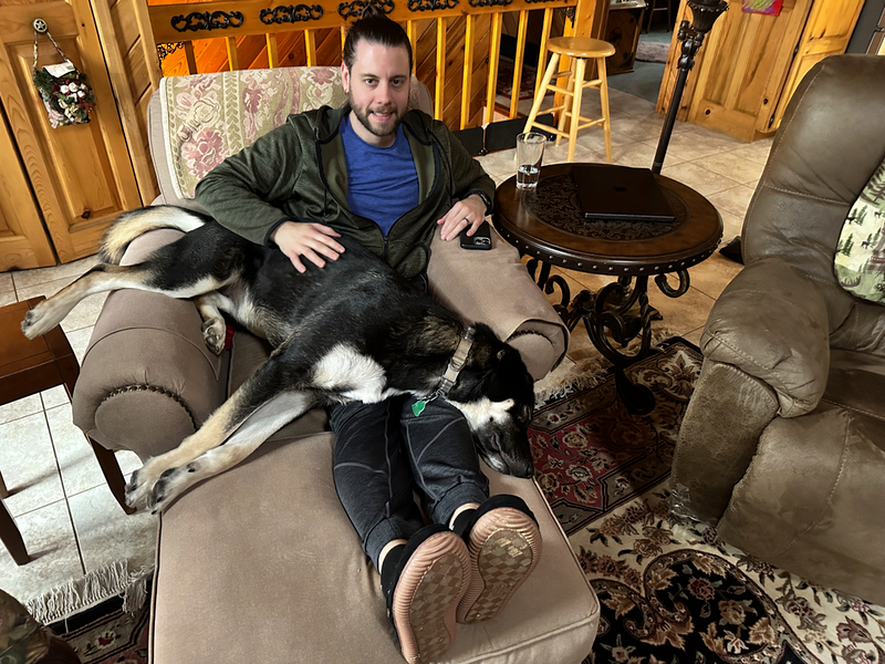 At 75 pounds and with a long enough body to stand taller than us, Asher is far from being a comfortable lap dog. That hasn’t stopped him. He likes to climb on top of me in the recliner while I am occupied with my computer. I think he was proofreading one of my blog posts in that picture.
