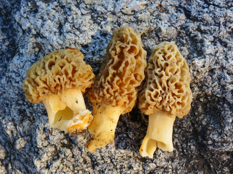 Cyndie and I are a great combination. She spotted some mushrooms growing under a dead pine tree in our front yard. I told her they tasted funny and she got all riled up, exclaiming that I shouldn’t eat them until I know what they are. I was teasing her, of course. Comparing images we found online, we are very confident that these are the very popular and definitely edible morel mushrooms.