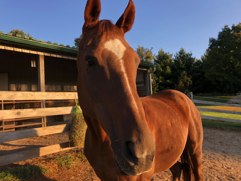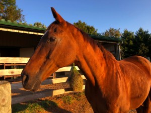 …I enjoyed a special interaction with Light in the paddock this morning. After I had filled their hay nets and the horses finished gobbling up all the feed from their buckets, I still had some housekeeping to finish. Light approached and pushed her nose toward my shoulder. I chatted with her while continuing to look down toward my task on the ground.