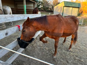 Sounds like it’s time for Swings to be eating soft senior feed. At the ripe old horse age of 29, she is already down a couple of other molars. She looks so great outwardly, I tend to forget that her internal parts could be wearing out. Maybe we need to start treating her with a little more respect for her elderly condition.