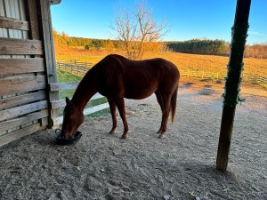 You may draw your own conclusion, but I smiled a special smile as I scooped up behind her in finishing my efforts tending to the mares for the morning.