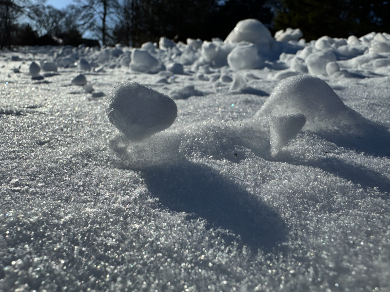 The wash of chunks that rolled off the plow blade beside the driveway is melting in its own interesting ways.
