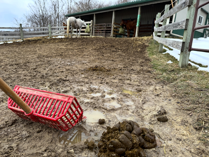 If the weather stays like this long enough, Light and Mix will have a chance to completely swap coloring. Mix’s natural grey color is easily darkened by the black dirt she finds to roll in while Light has been choosing the slippery slurry of melting lime screenings to brighten her coat with each new added smear.