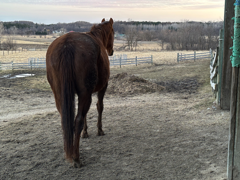 Back home this morning, I was able to witness the progress we have made working with the horses’ herd ranks instead of against them. I was also pleased to see the waterer in the paddocks was flowing freely for the first day in a long time. Winter has softened significantly, making morning chores so much more pleasant.