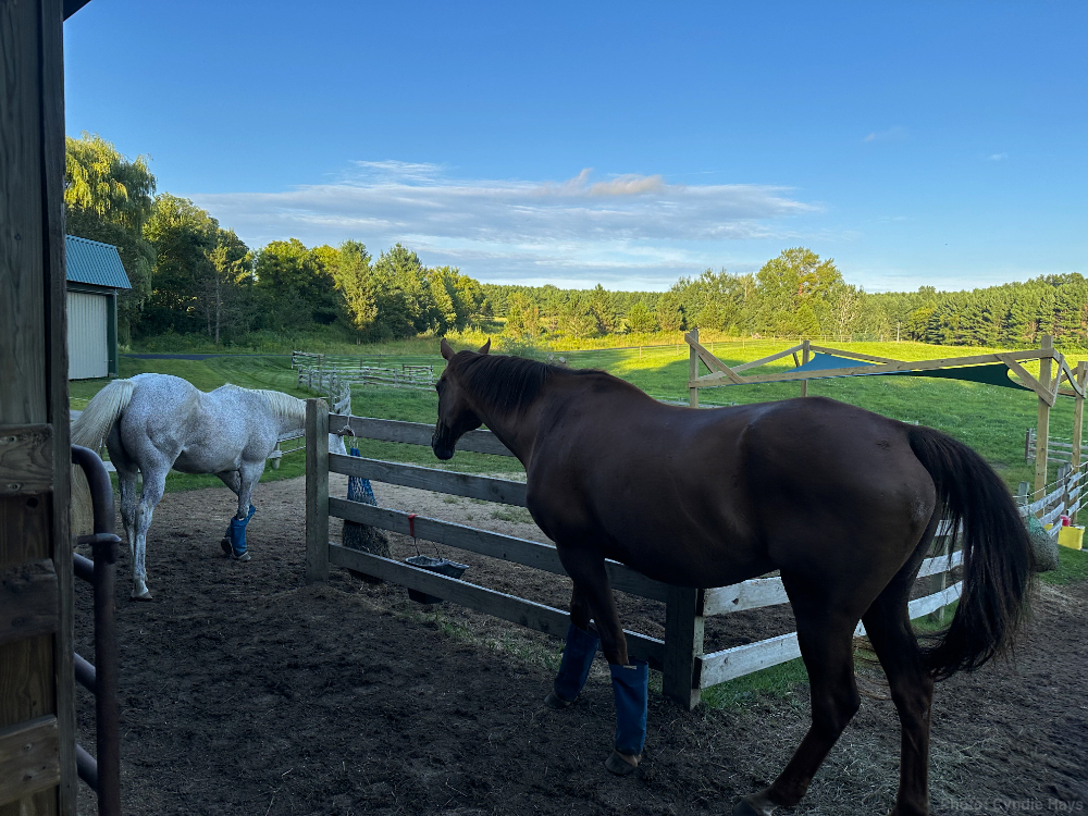 As Cyndie and Michelle talked out the behaviors on speakerphone, we all arrived at the same insight. We are going to provide better support to Light as the boss mare in the herd. It has been obvious for quite a while that Light was trying to take on the role that had been held by Swings when they first arrived here.