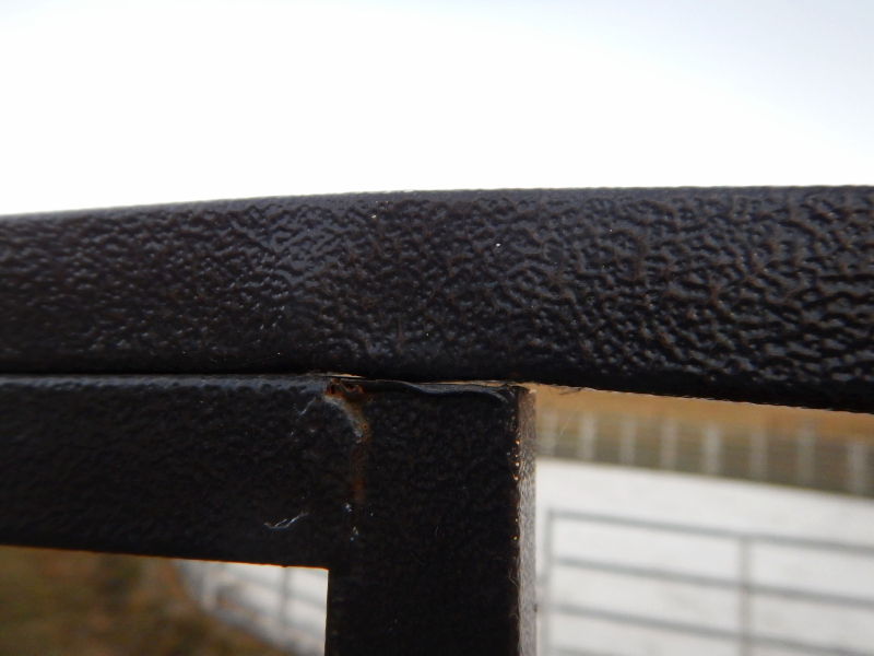 It is time to put the shade tarp over the frame, so I figured it best to first look into addressing the two bent top frame members. Ad-libbing a plan, I started taking out bolts to remove one section of bent frame. After multiple trips walking back to the shop for needed tools, I got the piece separated.
