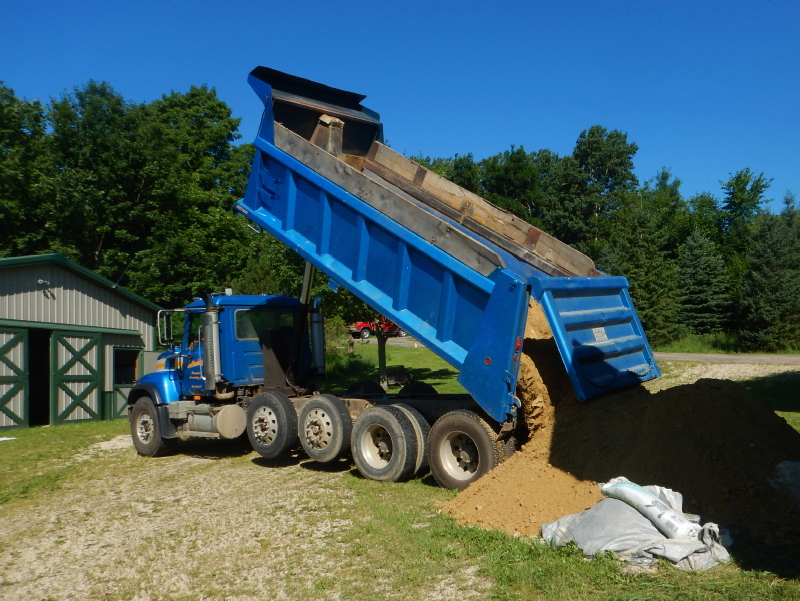 That loaded dump-truck really makes an impression on the land. As he prepared to depart, I asked the driver to NOT center his truck on the driveway on the way out, and instead to run one set of wheels right down the middle. I’ve been trying to do the same with our vehicles ever since his visit last year, but haven’t had much effect on the eruption of cracked pavement the truck left for us that time.