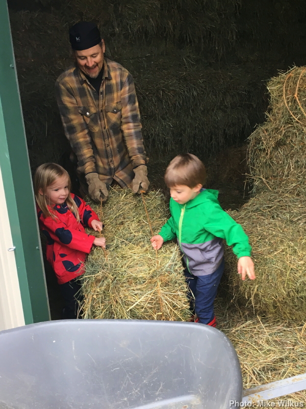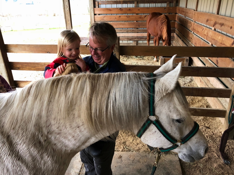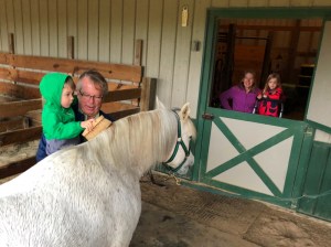 When they all arrived, the first order of business was to head straight to the barn from the car, instead of stopping inside the house. After a brief initial, and very cute, attention to the chickens, the horses pretty much ruled the day.