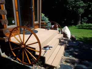 At this rate, by the time they get here the logs of the house will be so faded they will match the weathered boards of the deck.